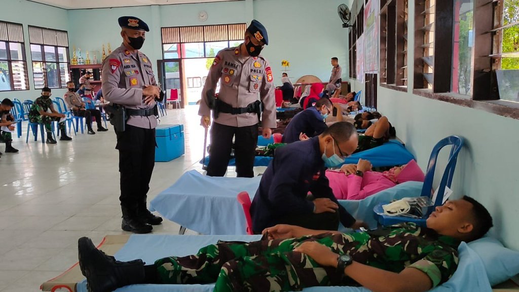 PAREPARE — Batalyon B Pelopor Satbrimob Polda Sulsel menggelar aksi donor darah dengan tema “Polri yang presisi mendukung pemulihan ekonomi dan reformasi struktural untuk mewujudkan indonesia Tangguh – Indonesia tumbuh” di Aula Mappagiling Batalyon B Pelopor Satbrimob Polda Sulsel, Jalan Chalik, Kelurahan Sumpang Minangae, Kecamatan abacukiki Barat Kota Parepare, Selasa 7 Juni 2022.