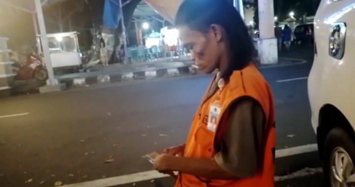 Korolus bekerja tiap hari sebagai juru parkir di area Pasar Senggol, Jalan Sultan Hasanuddin, Kota Parepare, Sulawesi Selatan.