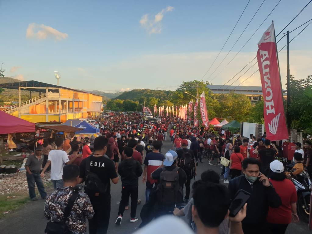 Ribuan warga padati stadion Gelora BJ Habibie untuk menyaksidkan laga uji coba PSM Makassar vs Sulut United, Senin 6 Juni 2022. Sampai sekitar pukul 17.45 Wita antrean pendukung PSM Makassar mulai di depan pintu masuk tampak mengular. Akan tetapi, suporter tidak merasa terganggu dengan situasi tersebut. Mereka maklum karena antusisme masyarakat kepada laga yang dinantikan tersebut.